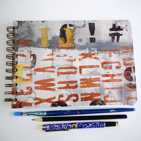 Original Monoprint Bound All Media A5 Notebook – 160gsm Seawhite Paper (50 Pages / 100 Sides) - Font