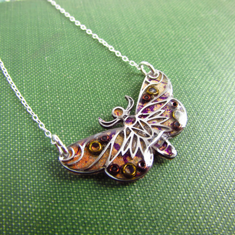 Nocturne - Moth Monoprint Pendant and Sterling Silver Necklace – Nimanoma